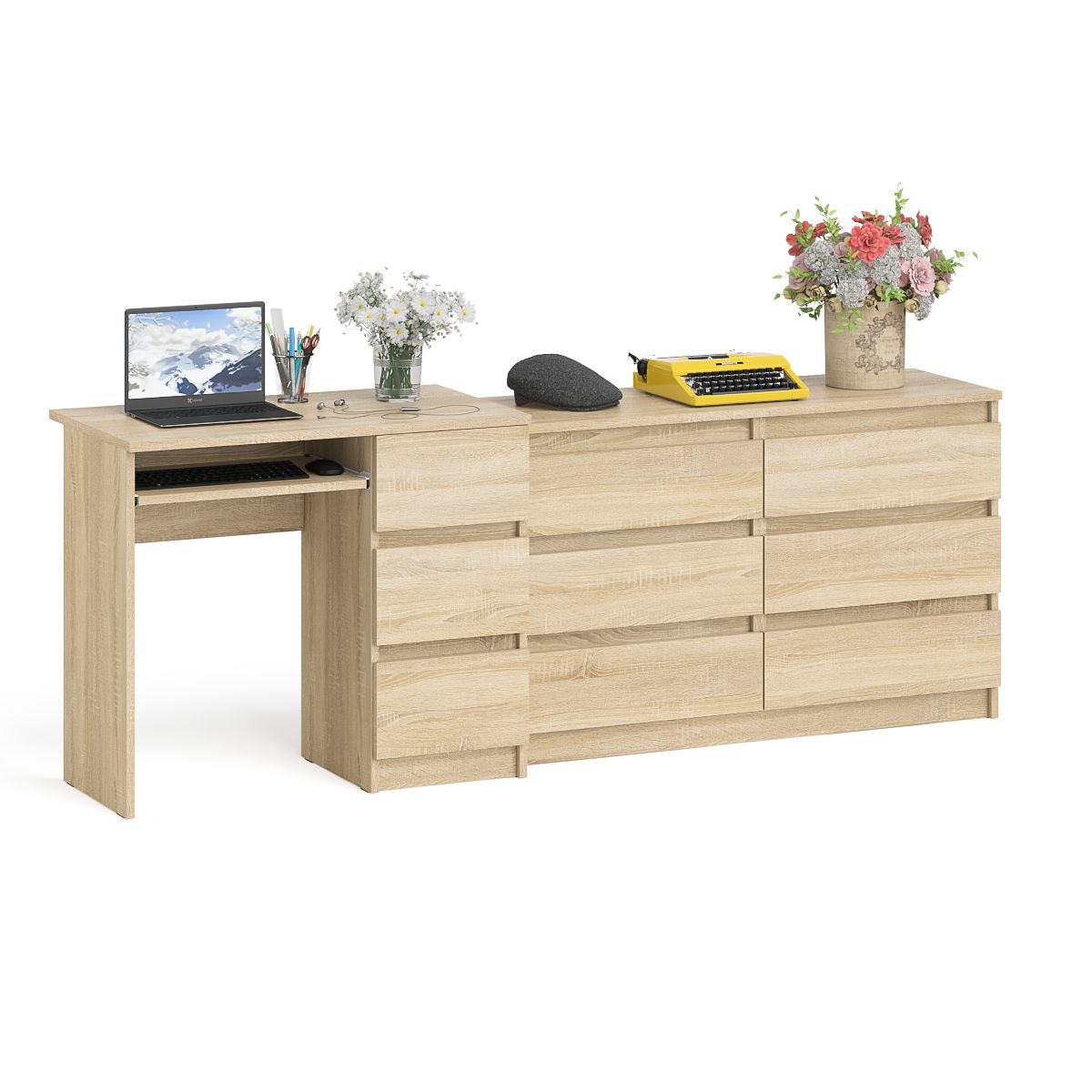 Отзывы о Столплит Комод Мори МК-1200 6 ящиков и компьютерный стол МС-6 три ящика справа Дуб Сонома