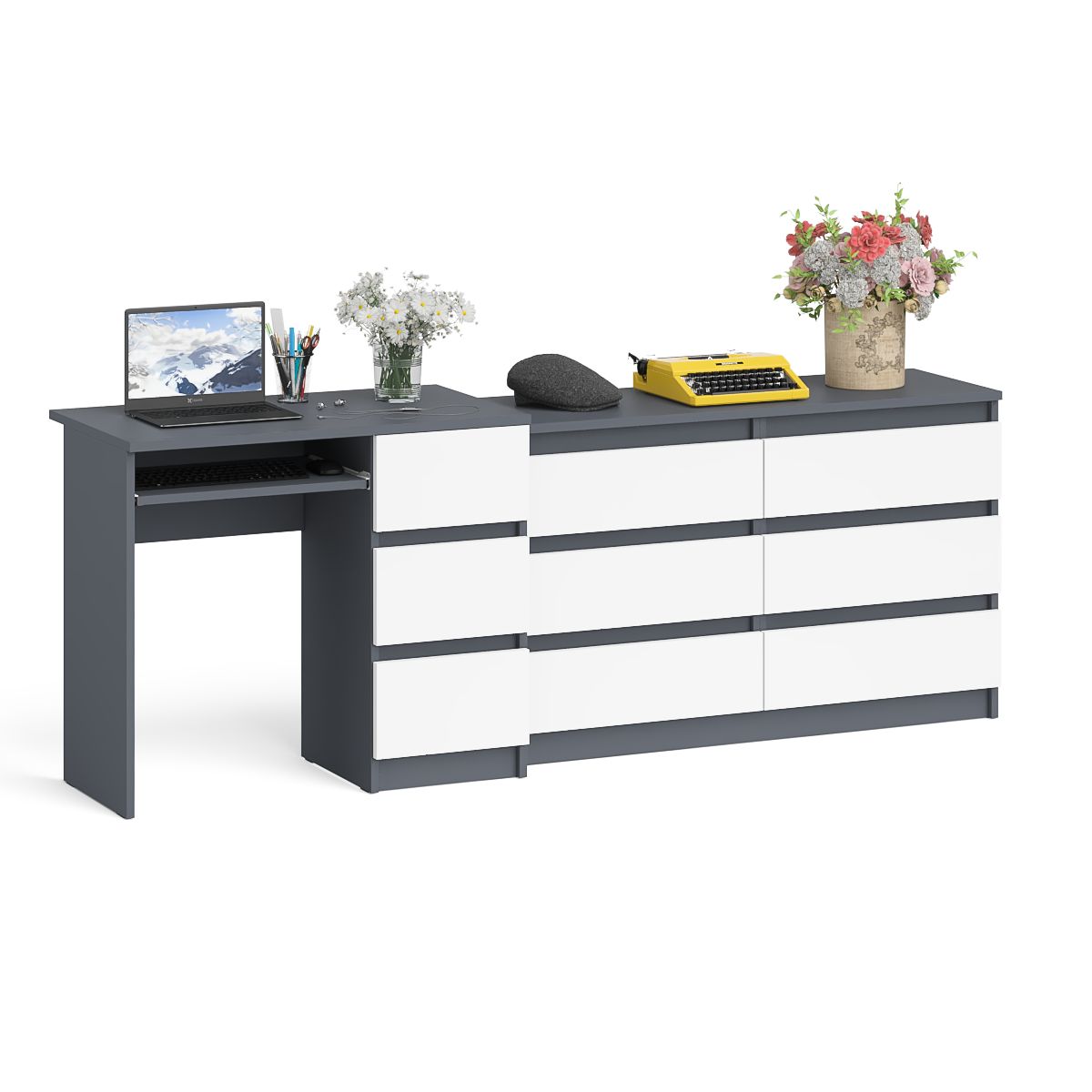 Отзывы о Столплит Комод Мори МК-1200 6 ящиков и компьютерный стол МС-6 три ящика справа Графит/Белый