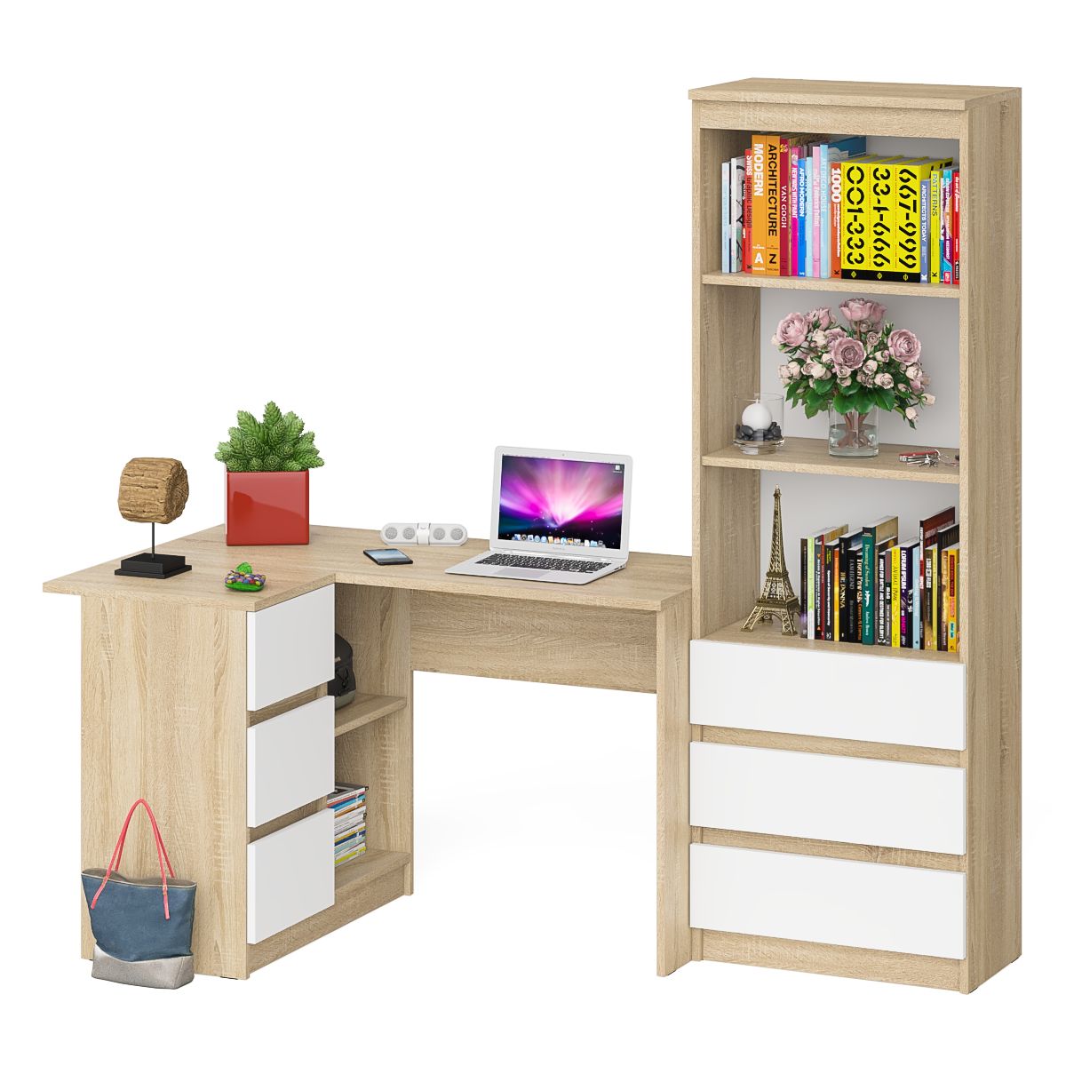 Отзывы о Столплит Стеллаж-комод Мори МСТ600 3 ящика и стол угловой компьютерный МС-16 левый Дуб Сонома, Белый