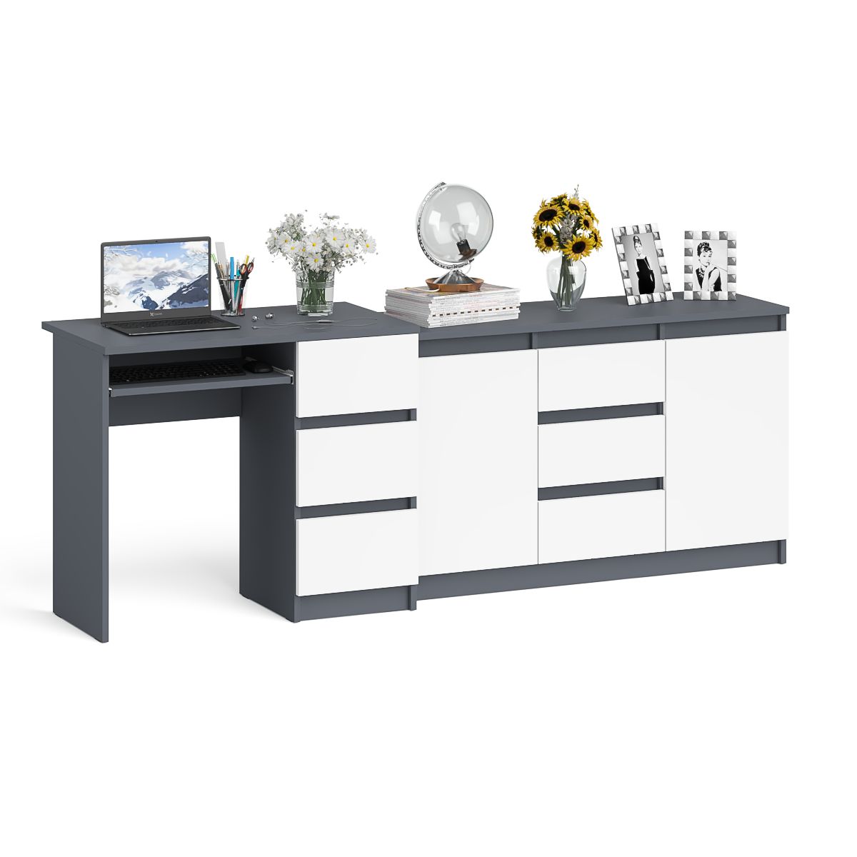 Отзывы о Столплит Тумба-комод МК1200 3 ящика и дверки и Мори компьютерный стол МС-6 три ящика справа Графит/Белый
