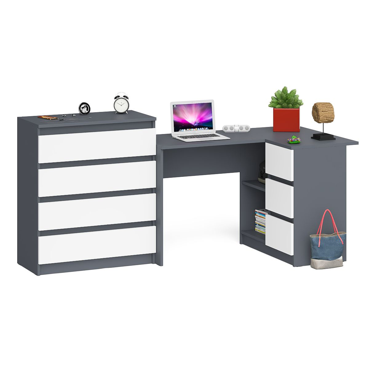 Отзывы о Столплит Комод Мори МК-800 4 ящика и угловой стол компьютерный МС-16 правый Графит/Белый