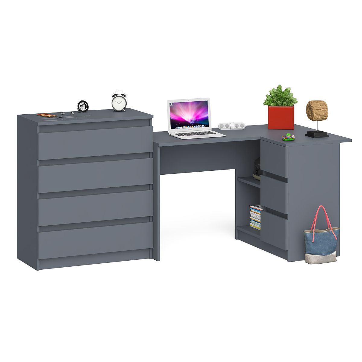 Отзывы о Столплит Комод Мори МК-800 4 ящика и угловой стол компьютерный МС-16 правый Графит