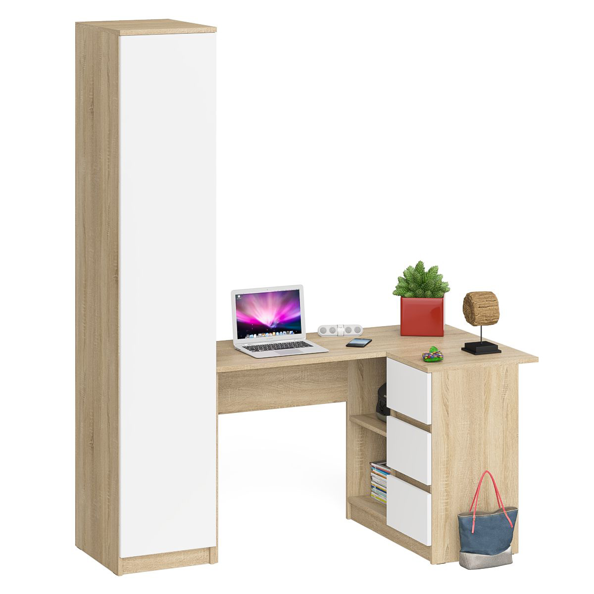 Отзывы о Столплит Пенал Мори 400 с угловым компьютерным столом МС-16 три ящика справа Дуб Сонома, Белый