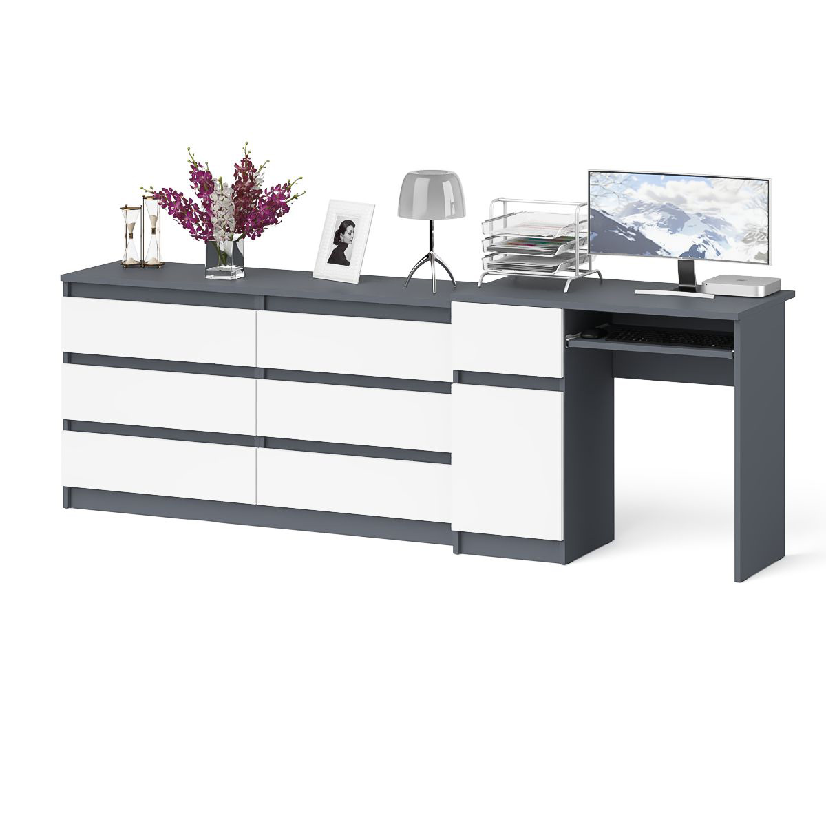 Отзывы о Столплит Комод 6-ть ящиков Мори 1380 и стол компьютерный МС-1 дверка и ящик слева Графит/Белый