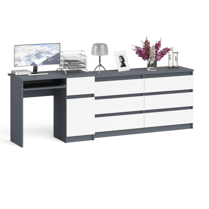 Отзывы о Столплит Комод Мори МК1380 6 выдвижных ящиков с компьютерным столом МС-1 правый Графит/Белый