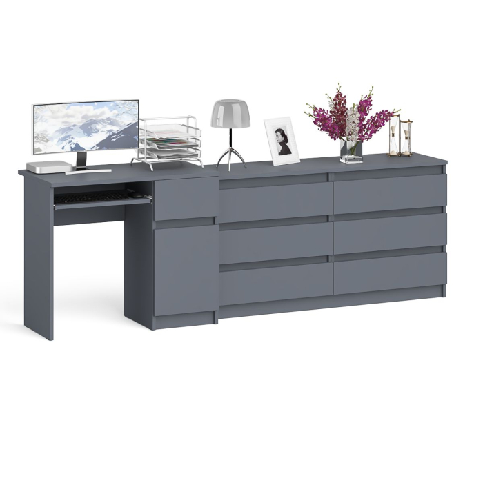 Отзывы о Столплит Комод Мори МК1380 6 выдвижных ящиков с компьютерным столом МС-1 правый Графит