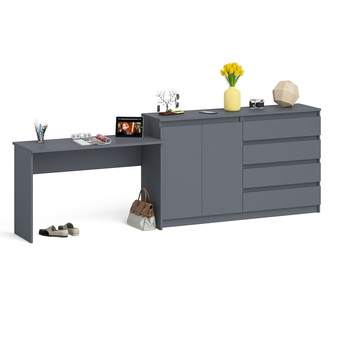 Тумба-комод Мори 1600.1 с письменным столом МСП1200 - минималистичный дизайн и доступная цена позволяет наслаждаться качественной и современной мебелью без значительных финансовых затрат!