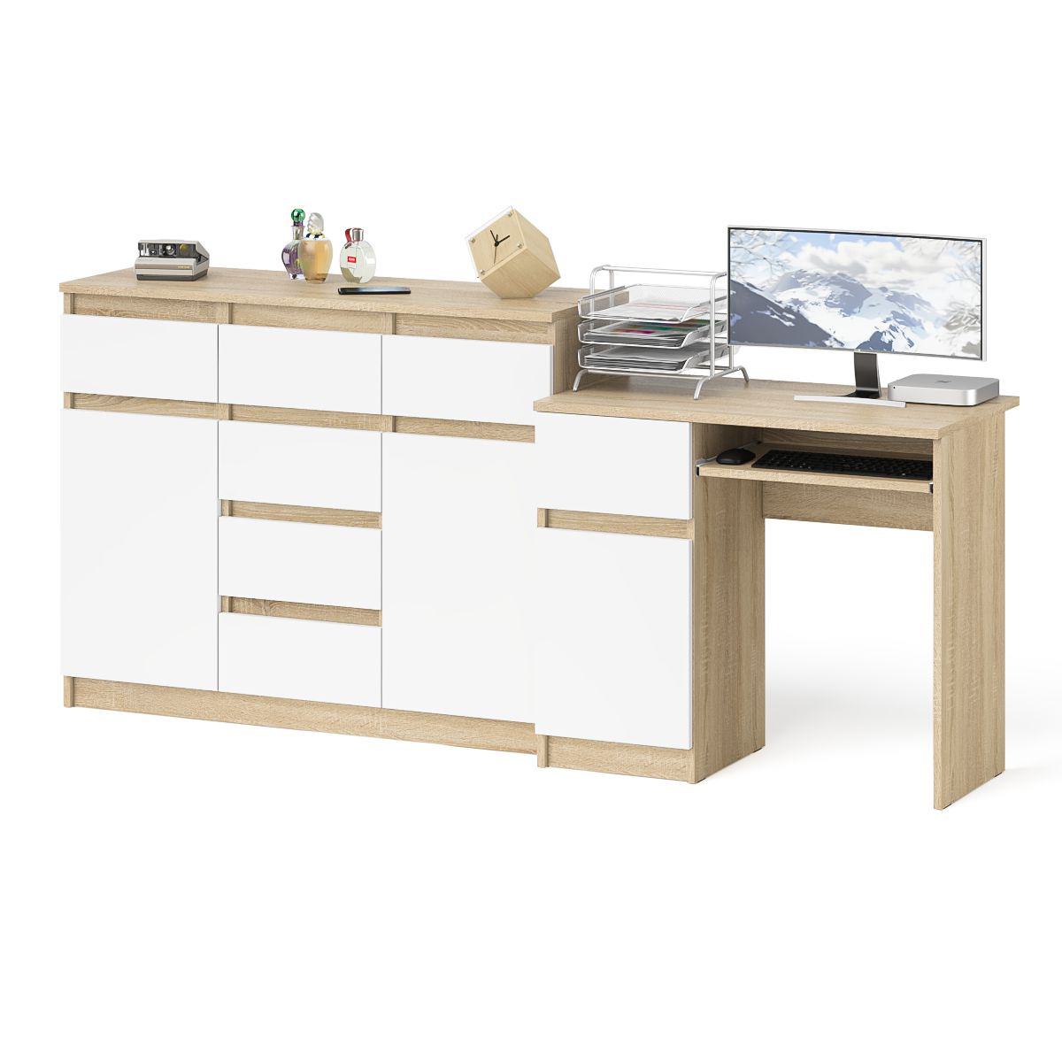 Отзывы о Столплит Комод-тумба Мори 1200.4 и левый компьютерный стол МС-1 Дуб Сонома, Белый