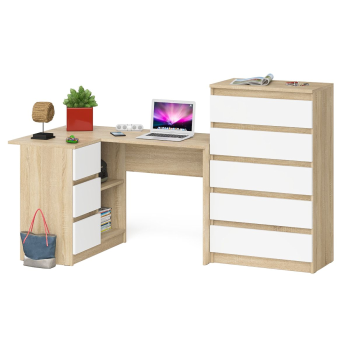 Отзывы о Столплит Комод на 700 5-ть ящиков и стол компьютерный МС-16 угловой левый серии Мори Дуб Сонома, Белый