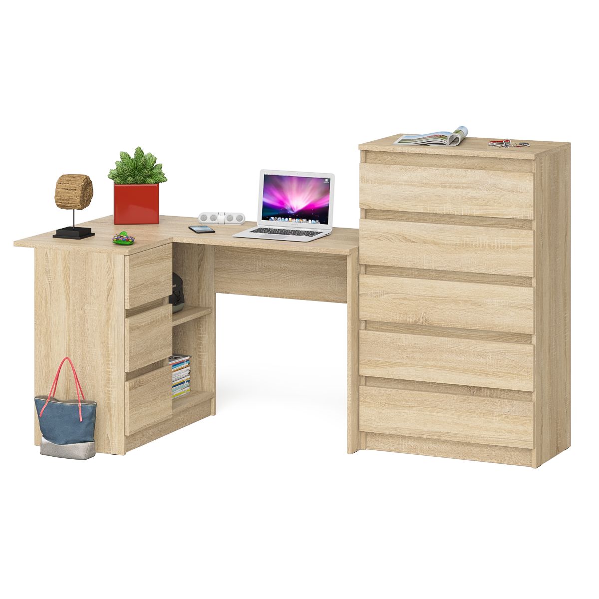 Отзывы о Столплит Комод на 700 5-ть ящиков и стол компьютерный МС-16 угловой левый серии Мори Дуб Сонома