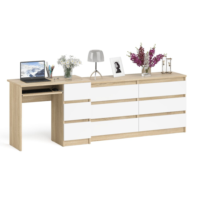 Отзывы о Столплит Комод 1380 6-ть ящиков Мори с однотумбовым столом компьютерным МС-6 правым Дуб Сонома, Белый