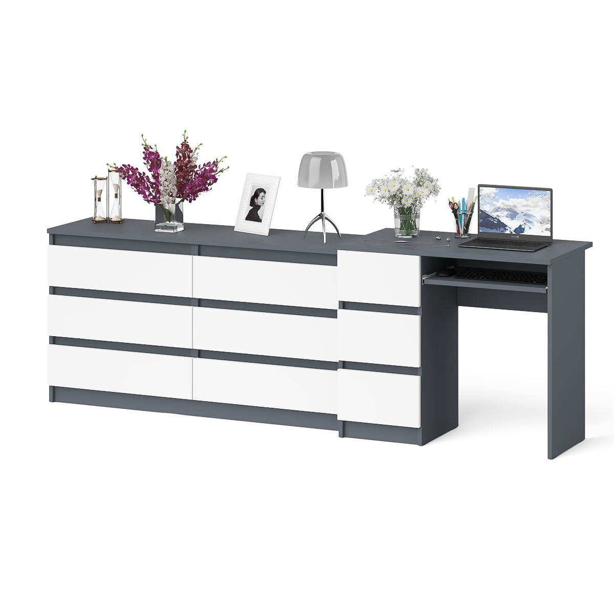 Отзывы о Столплит Широкий комод Мори МК1380.6 и стол компьютерный МС-6 три ящика слева Графит/Белый