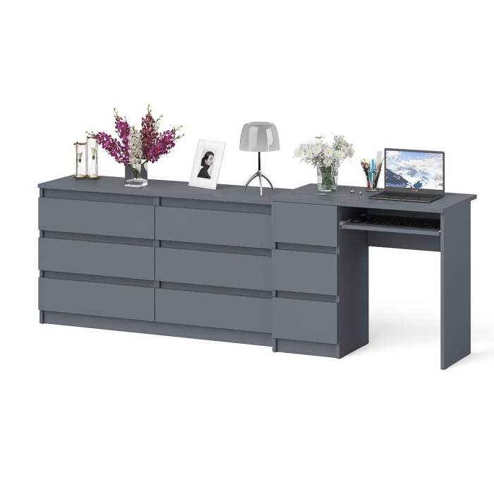 Отзывы о Столплит Широкий комод Мори МК1380.6 и стол компьютерный МС-6 три ящика слева Графит