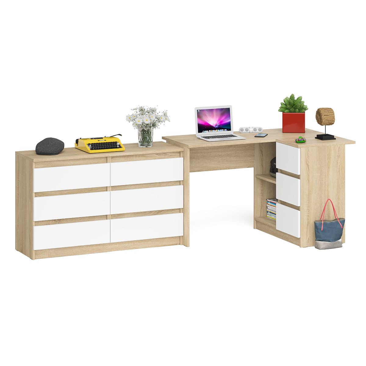 Отзывы о Столплит Комод Мори 1200 6 ящиков и компьютерный угловой стол МС-16 правый Дуб Сонома, Белый