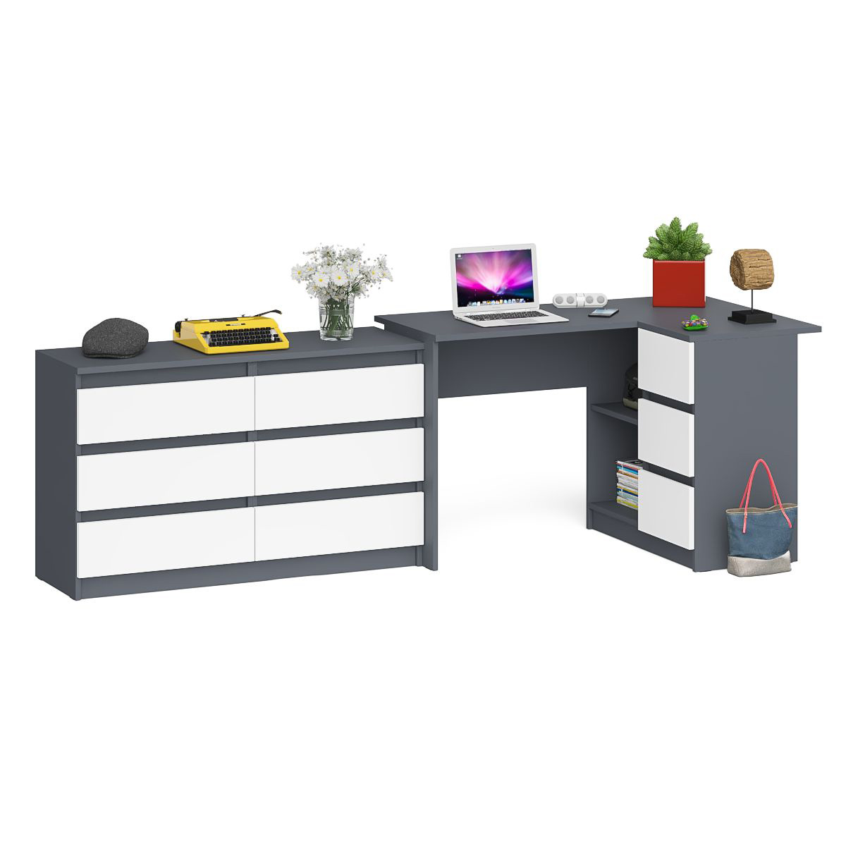 Отзывы о Столплит Комод Мори 1200 6 ящиков и компьютерный угловой стол МС-16 правый Графит/Белый