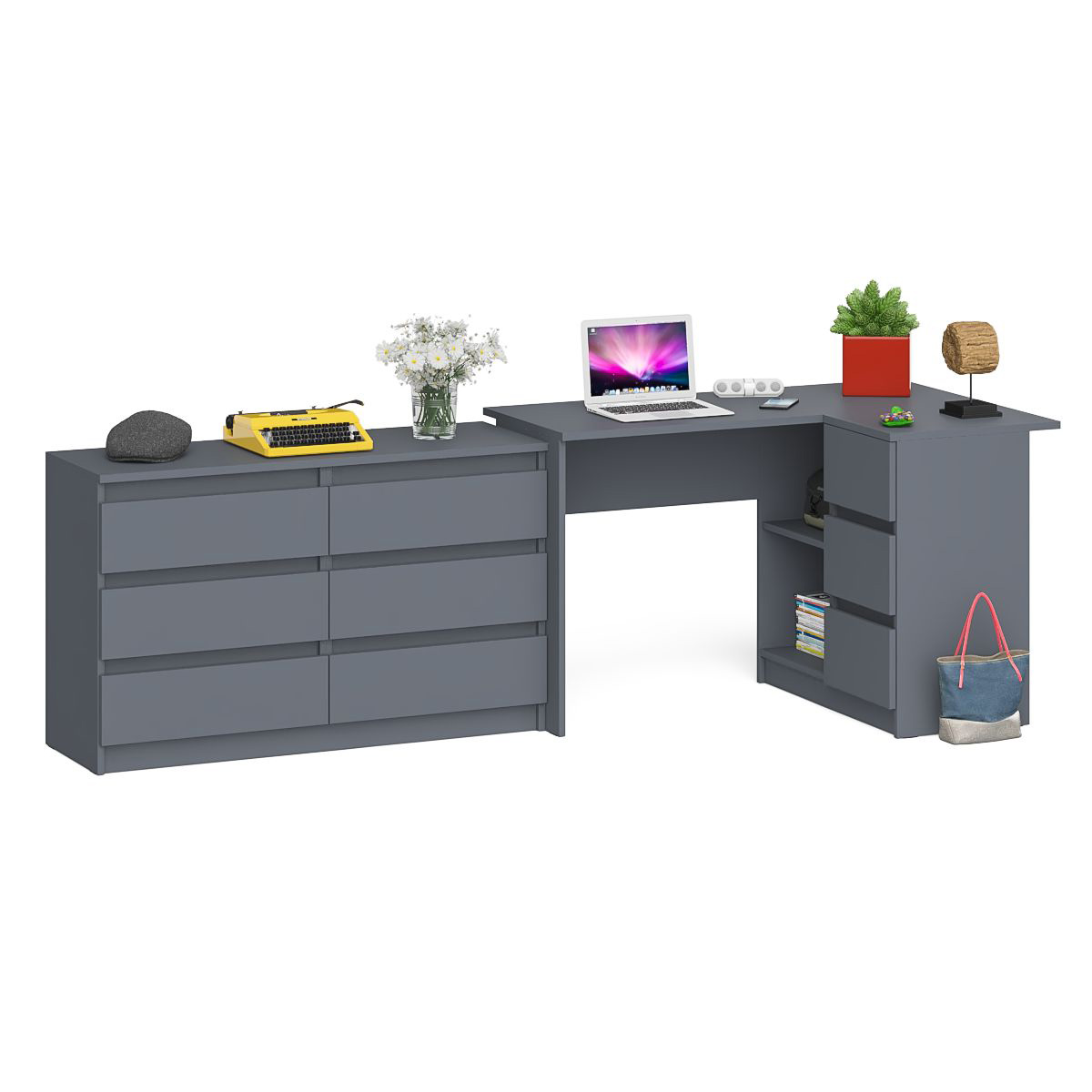Отзывы о Столплит Комод Мори 1200 6 ящиков и компьютерный угловой стол МС-16 правый Графит