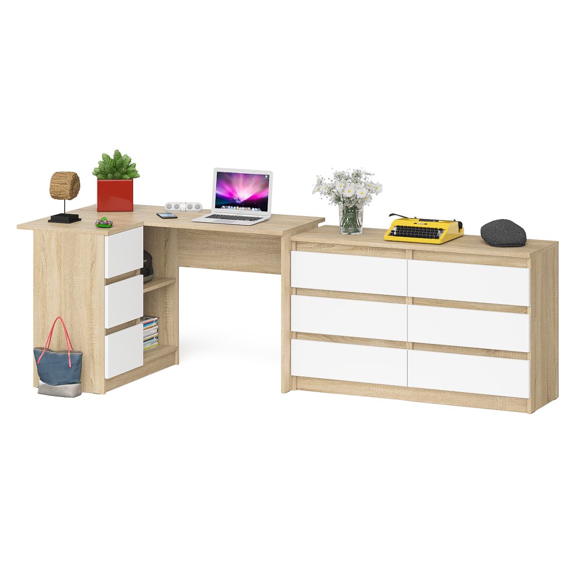Отзывы о Столплит Комод Мори модель МК1200.6 со столом компьютерным угловым МС-16 левым Дуб Сонома, Белый