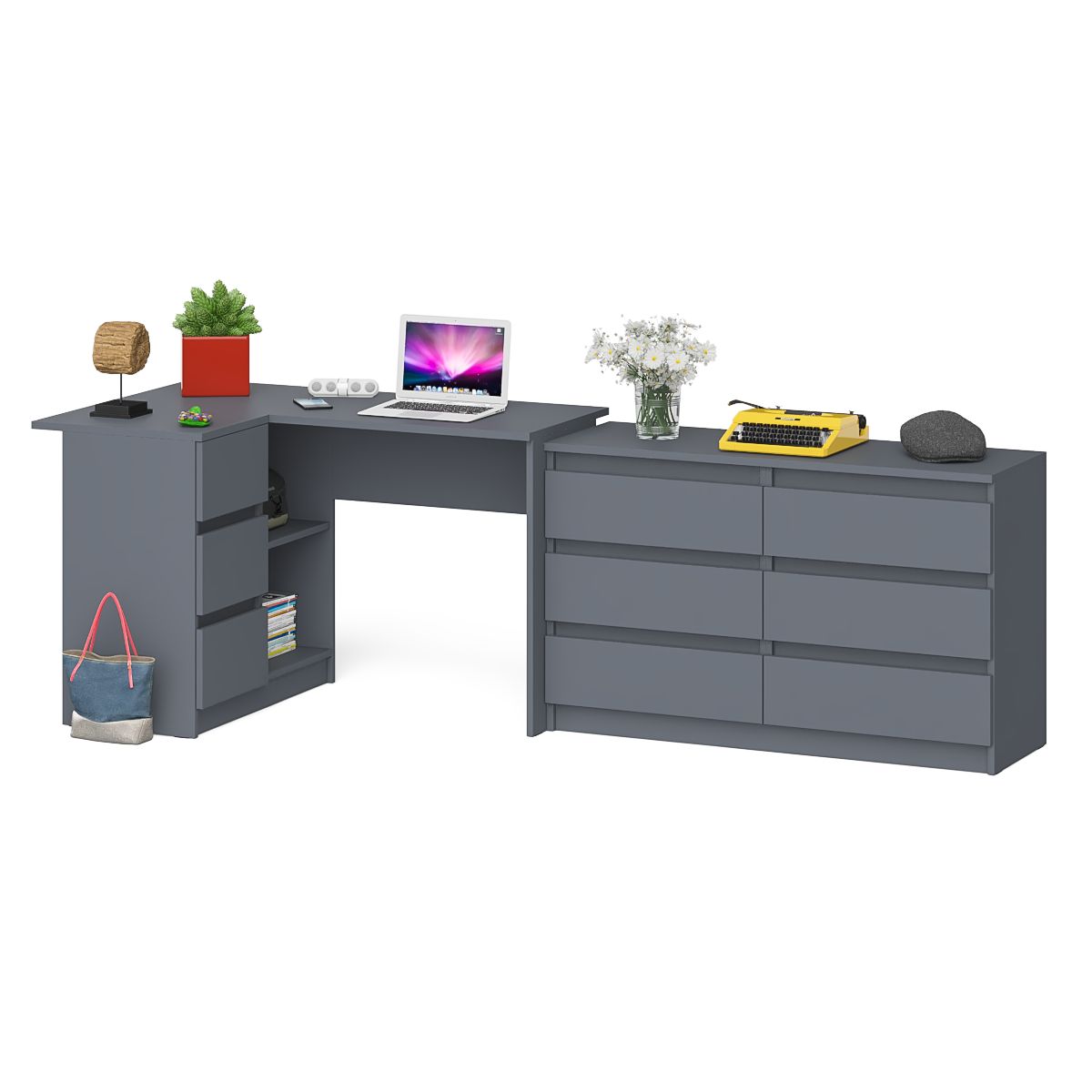 Отзывы о Столплит Комод Мори модель МК1200.6 со столом компьютерным угловым МС-16 левым Графит