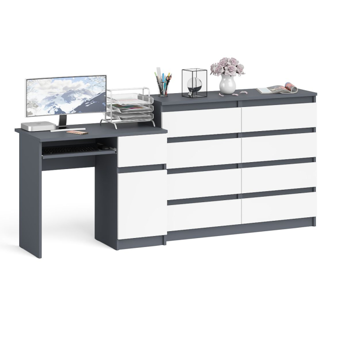 Отзывы о Столплит Комод 8-мь ящиков Мори МК1200 и правый компьютерный стол Мори МС-1 Графит/Белый