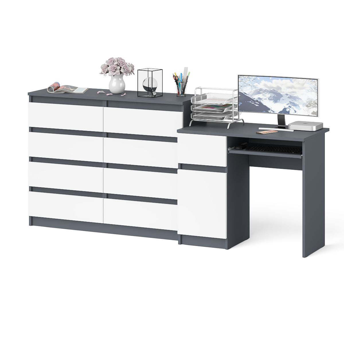 Отзывы о Столплит Комод на восемь ящиков Мори 1200.8 и левый компьютерный стол МС-1 Графит/Белый