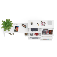 Открывание ящиков производится за счет пространства между планками и фасадами. Выдвижные ящики на роликовых направляющих L=350 мм неполного выдвижения обеспечивают комфортную эксплуатацию. На нижних кромках опор предусмотрены пластиковые подпятники для защиты поверхности пола от механических повреждений. Поставляется в разобранном виде в надёжной упаковке, с комплектом сборочной фурнитуры и инструкцией по сборке.