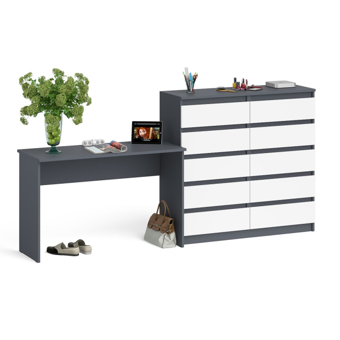 Отзывы о Столплит Большой комод МК1200.10 десять ящиков и письменный стол МСП1200 Мори Графит/Белый