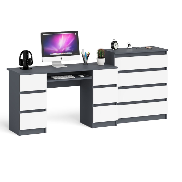 Отзывы о Столплит Комод 800 4-ре ящика Мори и двухтумбовый компьютерный стол МС-2 Графит/Белый