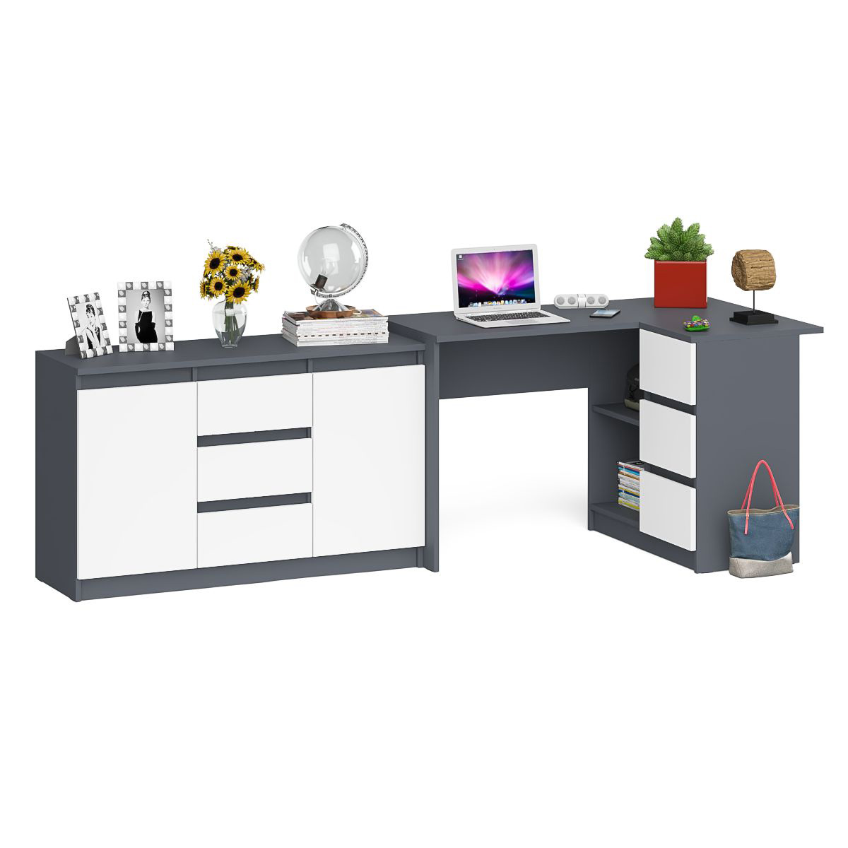 Отзывы о Столплит Комод-тумба три ящика и две дверки по бокам Мори МК1200.3 и компьютерный стол МС-16 правый Графит/Белый