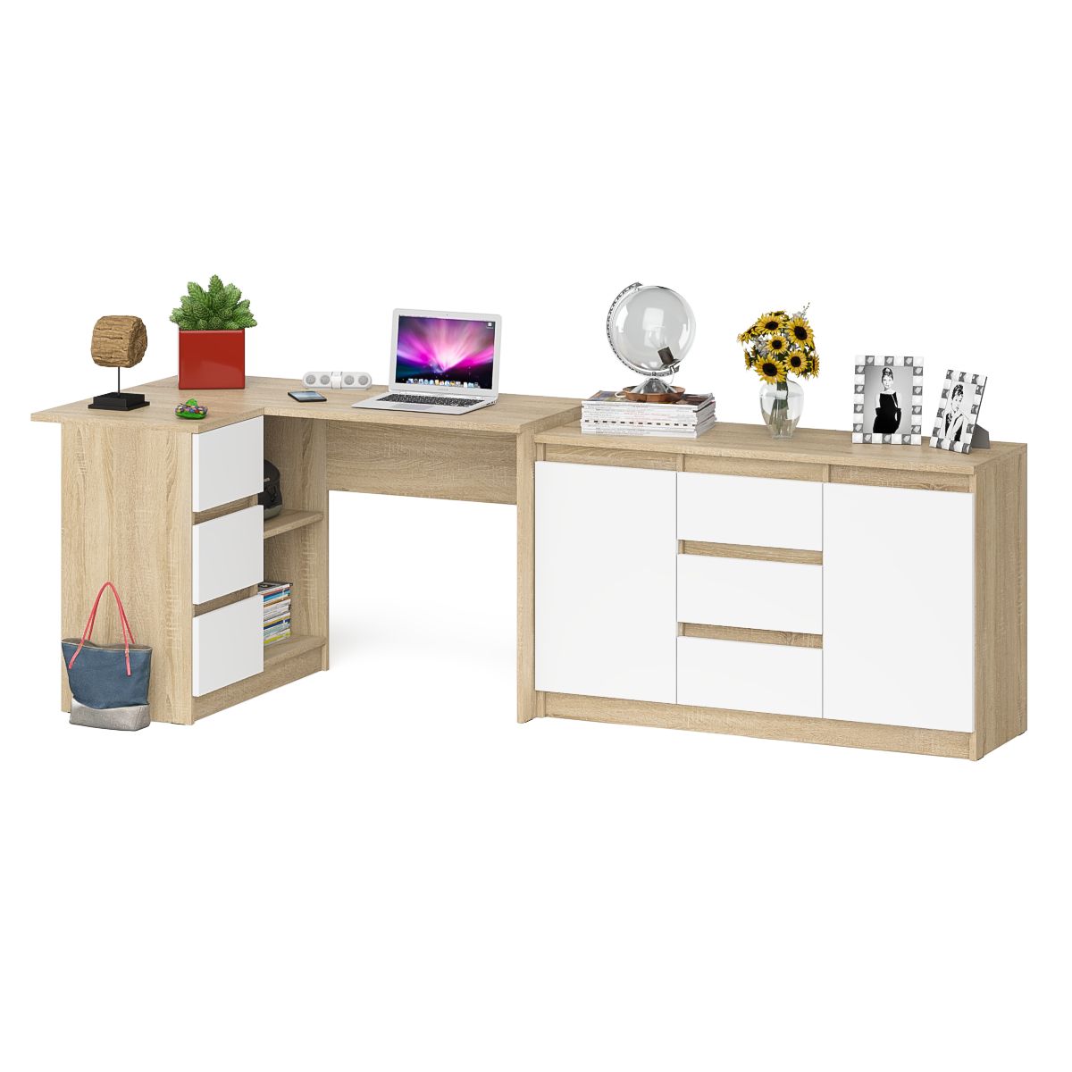 Отзывы о Столплит Тумба-комод ящики по середине и дверки по бокам Мори МК1200.3 и стол компьютерный МС-16 левый Дуб Сонома, Белый