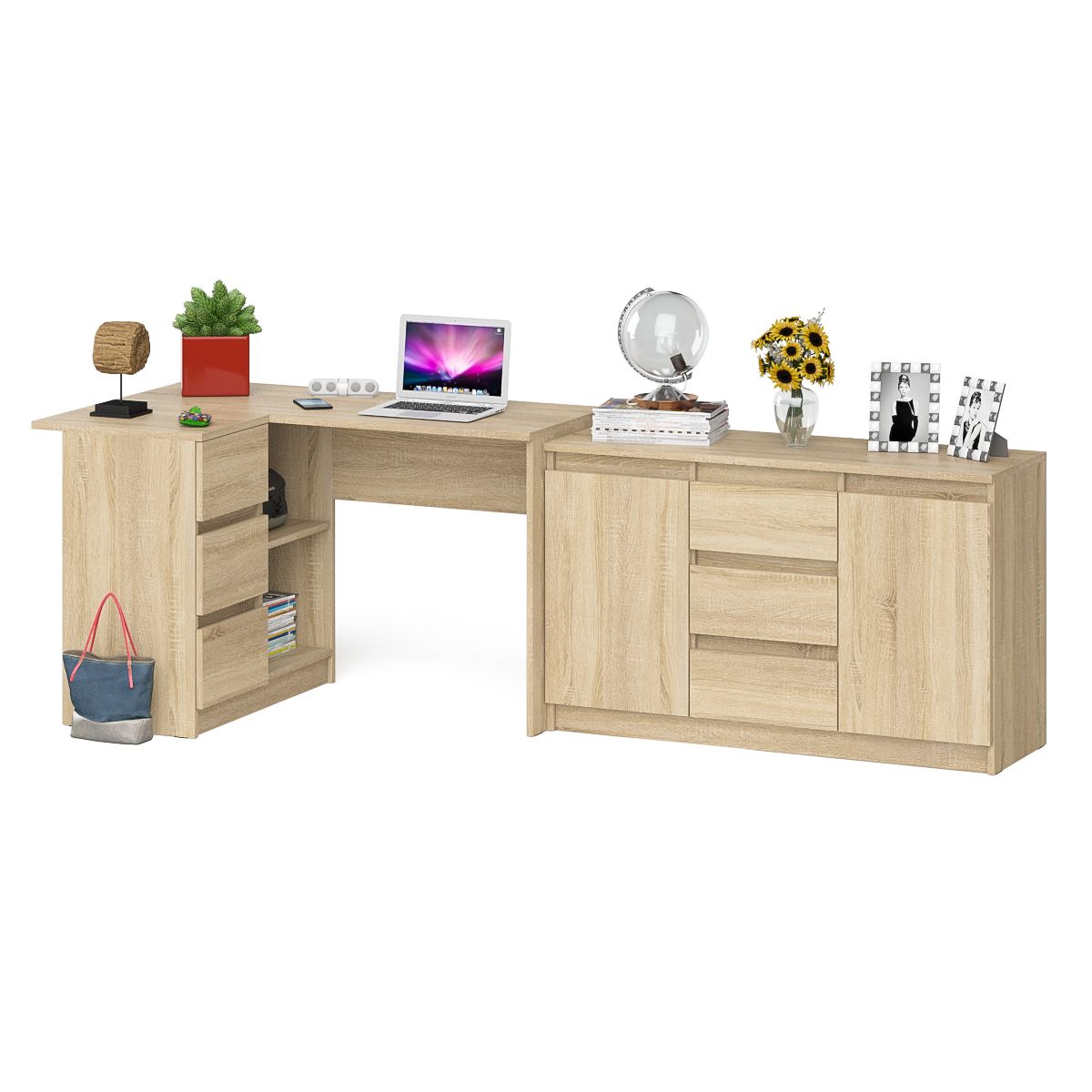Отзывы о Столплит Тумба-комод ящики по середине и дверки по бокам Мори МК1200.3 и стол компьютерный МС-16 левый Дуб Сонома