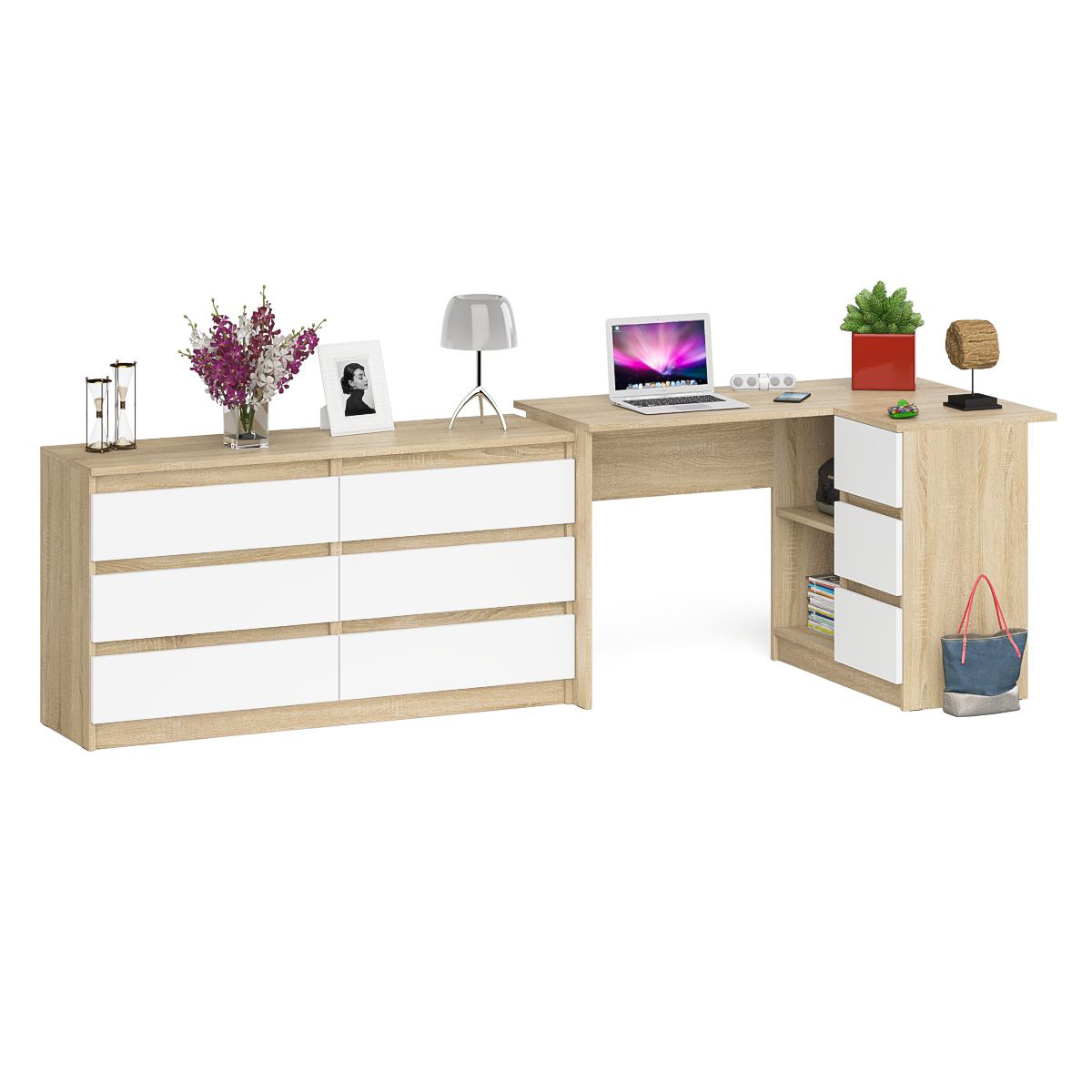Отзывы о Столплит Комод широкий Мори МК1380 6-ть ящиков и стол угловой компьютерный Мори МС-16 правый Дуб Сонома, Белый