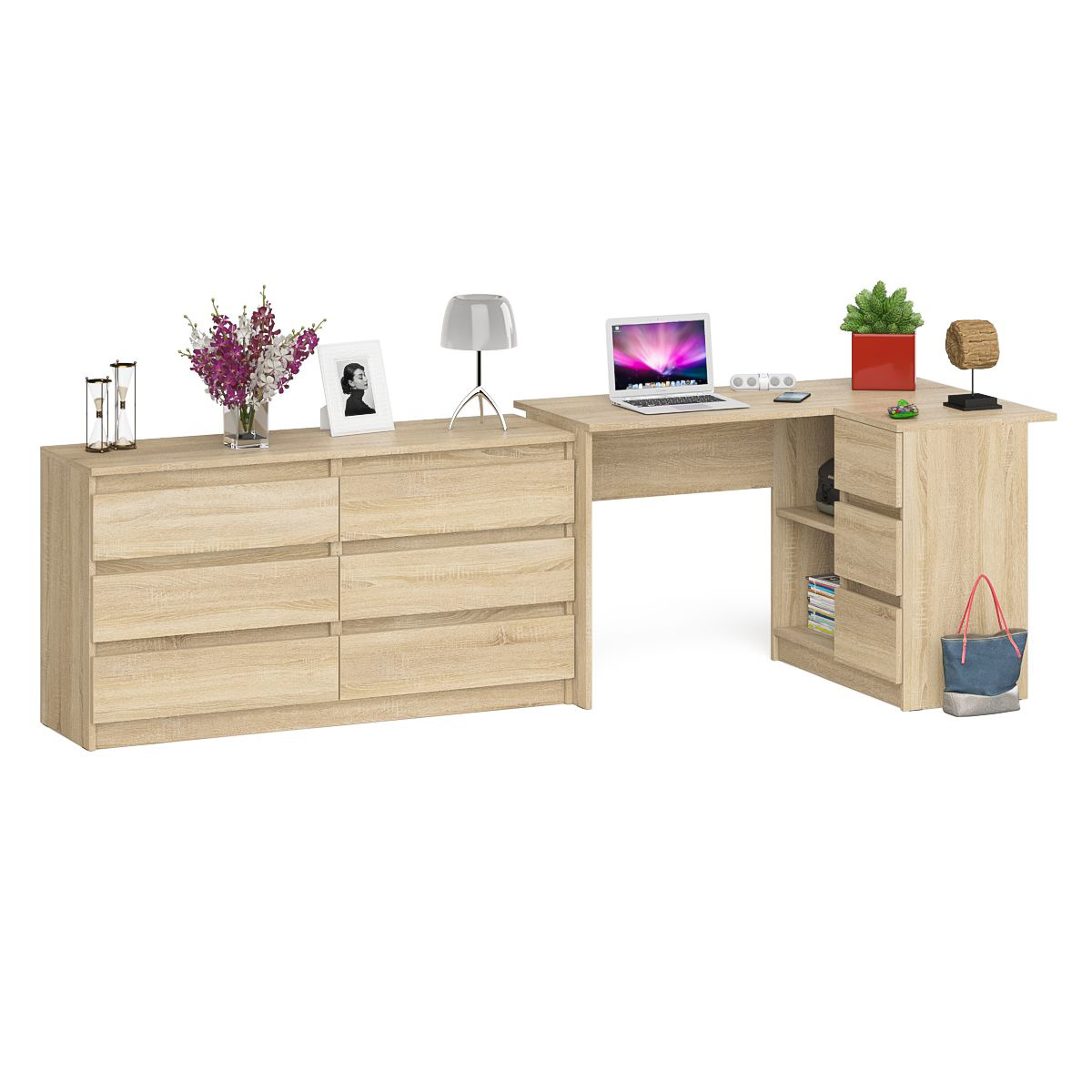 Отзывы о Столплит Комод широкий Мори МК1380 6-ть ящиков и стол угловой компьютерный Мори МС-16 правый Дуб Сонома