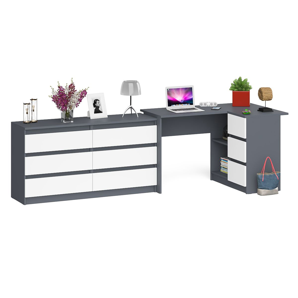 Отзывы о Столплит Комод широкий Мори МК1380 6-ть ящиков и стол угловой компьютерный Мори МС-16 правый Графит/Белый