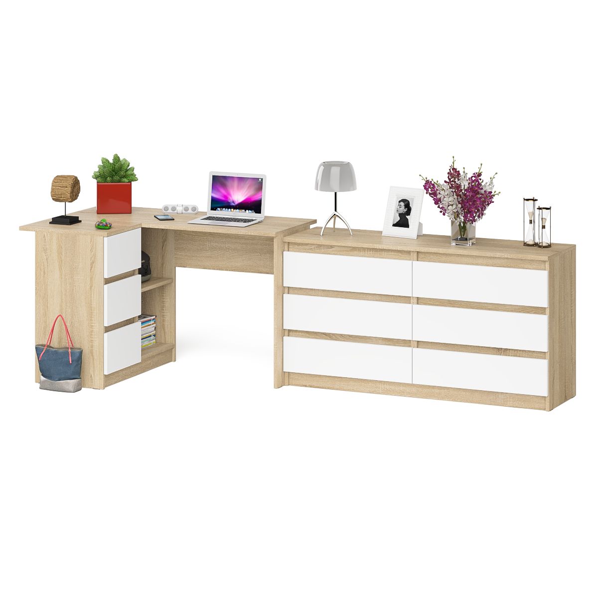 Отзывы о Столплит Комод Мори МК1380 на 6 ящиков с угловым компьютерным столом Мори МС-16 3 выдвижных ящика слева Дуб Сонома, Белый