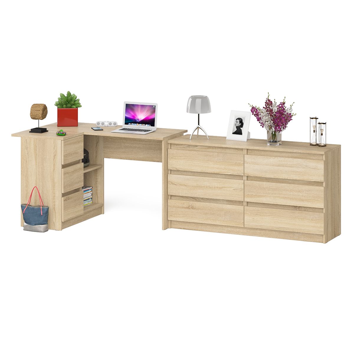 Отзывы о Столплит Комод Мори МК1380 на 6 ящиков с угловым компьютерным столом Мори МС-16 3 выдвижных ящика слева Дуб Сонома