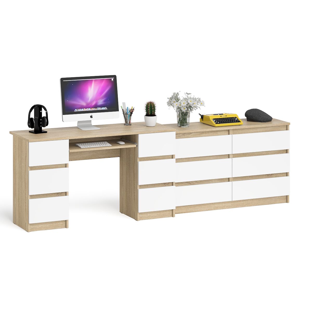 Отзывы о Столплит Комод Мори на шесть ящиков МК1200.6 и Стол компьютерный 2-х тумбовый Мори МС-2 Дуб Сонома, Белый