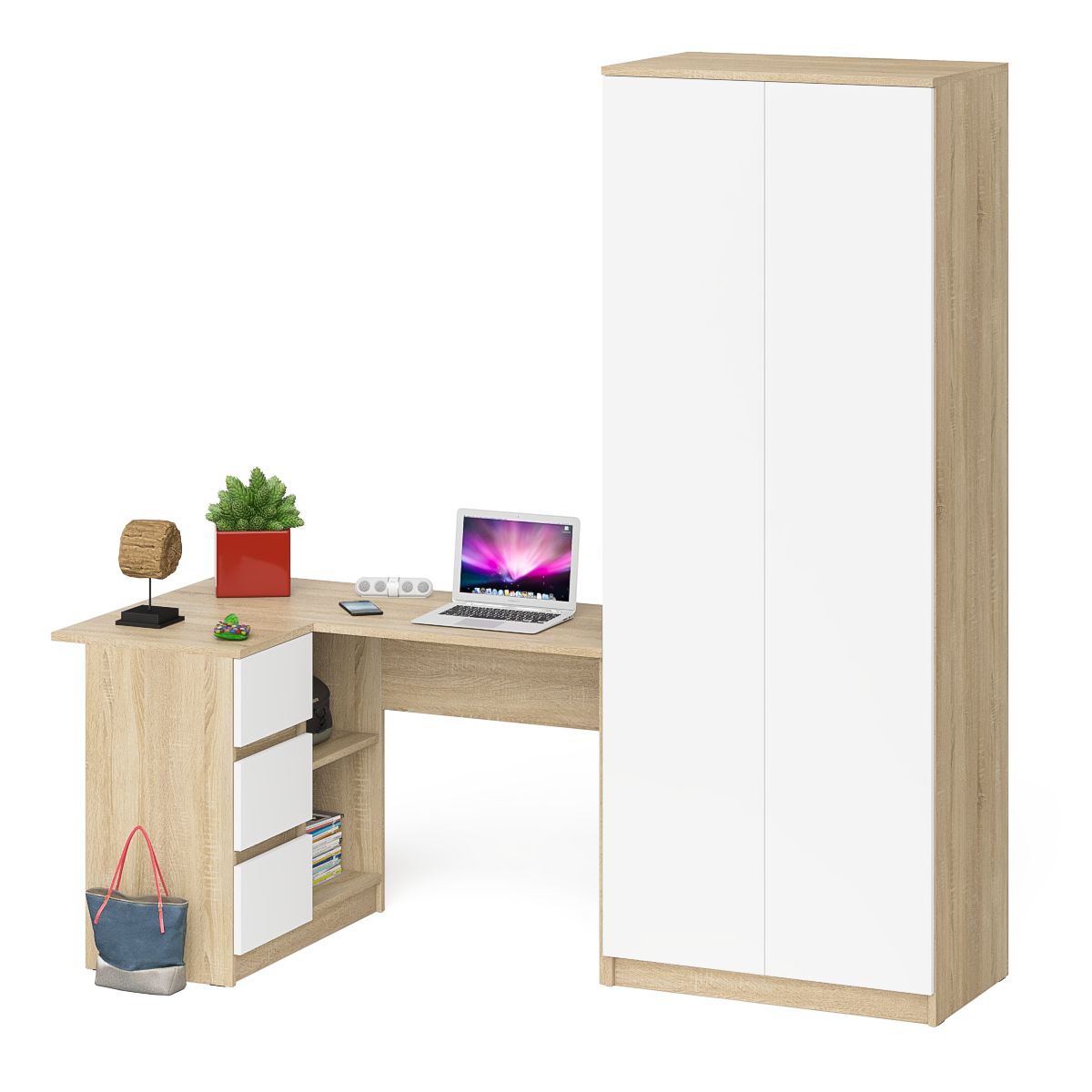 Отзывы о Столплит Шкаф двухдверный Мори МШ800 и угловой компьютерный стол МС-16 3 ящика слева Дуб Сонома, Белый