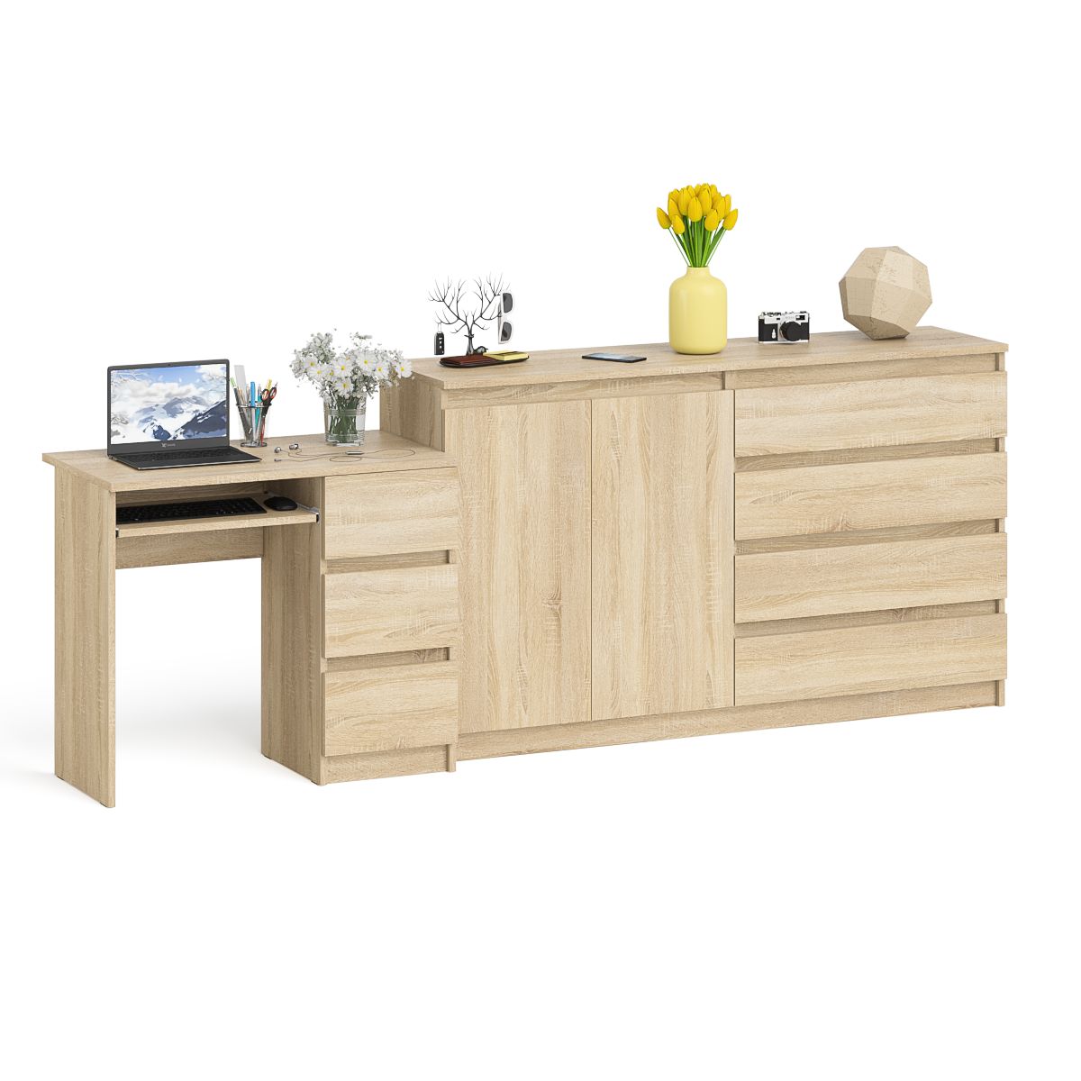 Отзывы о Столплит Комод-тумба Мори МК1600 четыре ящика и дверки со столом компьютерным МС-6 тумба справа Дуб Сонома