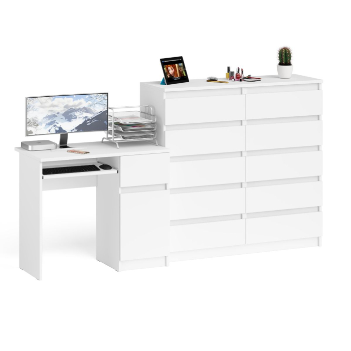 Комод большой МК1200 10-ть ящиков Мори и стол компьютерный МС-1 правый - минималистичный дизайн и доступная цена позволяет наслаждаться качественной и современной мебелью без значительных финансовых затрат!