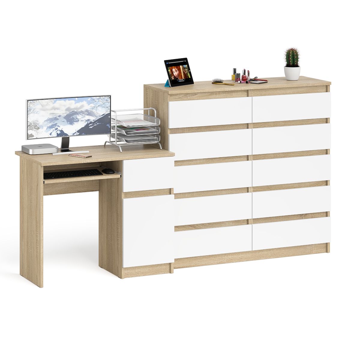 Отзывы о Столплит Комод большой МК1200 10-ть ящиков Мори и стол компьютерный МС-1 правый Дуб Сонома, Белый