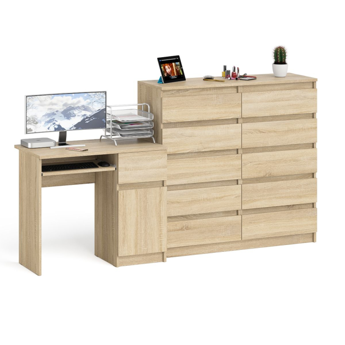 Отзывы о Столплит Комод большой МК1200 10-ть ящиков Мори и стол компьютерный МС-1 правый Дуб Сонома