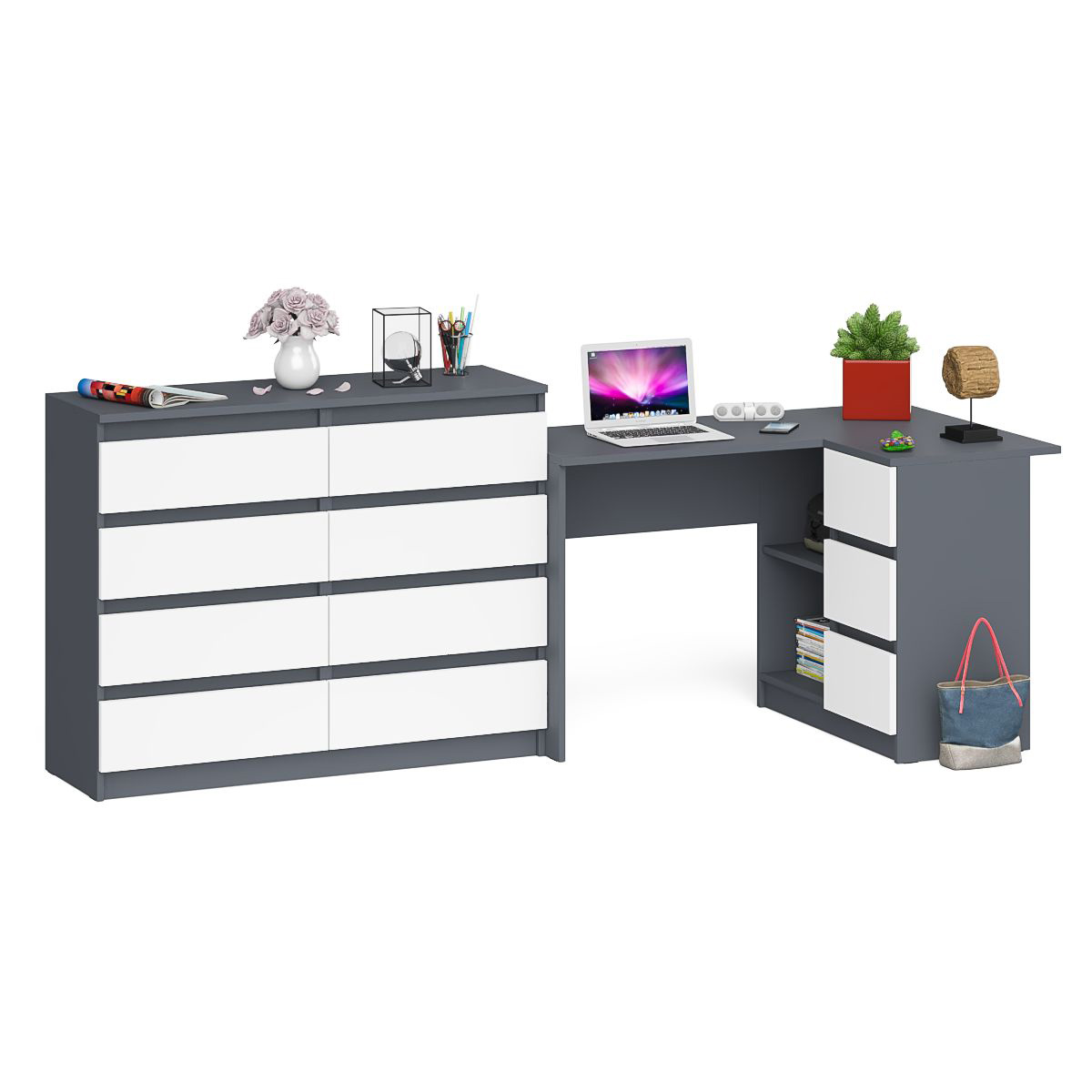 Отзывы о Столплит Компьютерный стол МС-16 правый с комодом МК1200 8 ящиков Мори Графит/Белый