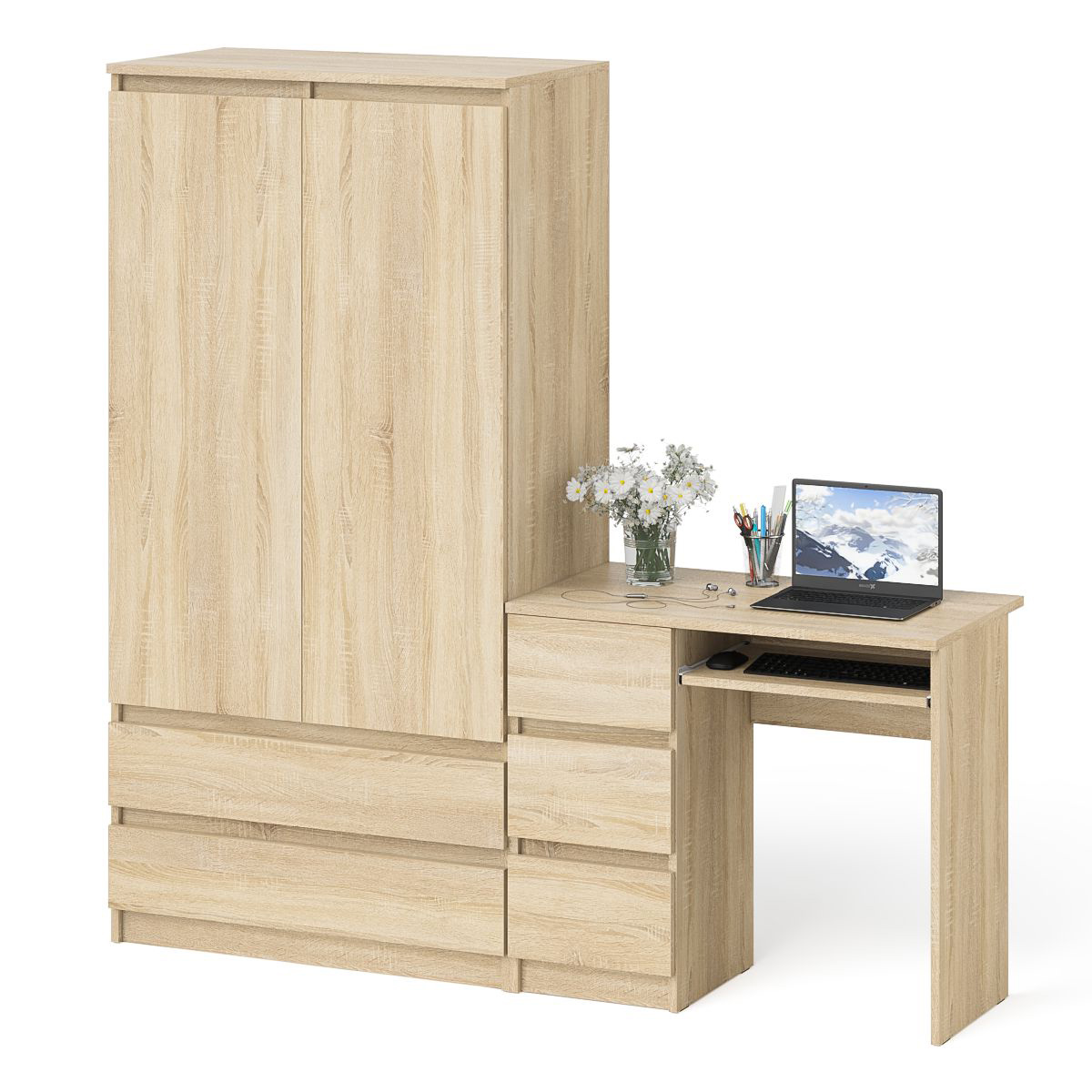 Стол компьютерный с тремя ящиками слева и шкаф-комод МШ900 три ящика и две двери Мори - минималистичный дизайн и доступная цена позволяет наслаждаться качественной и современной мебелью без значительных финансовых затрат!