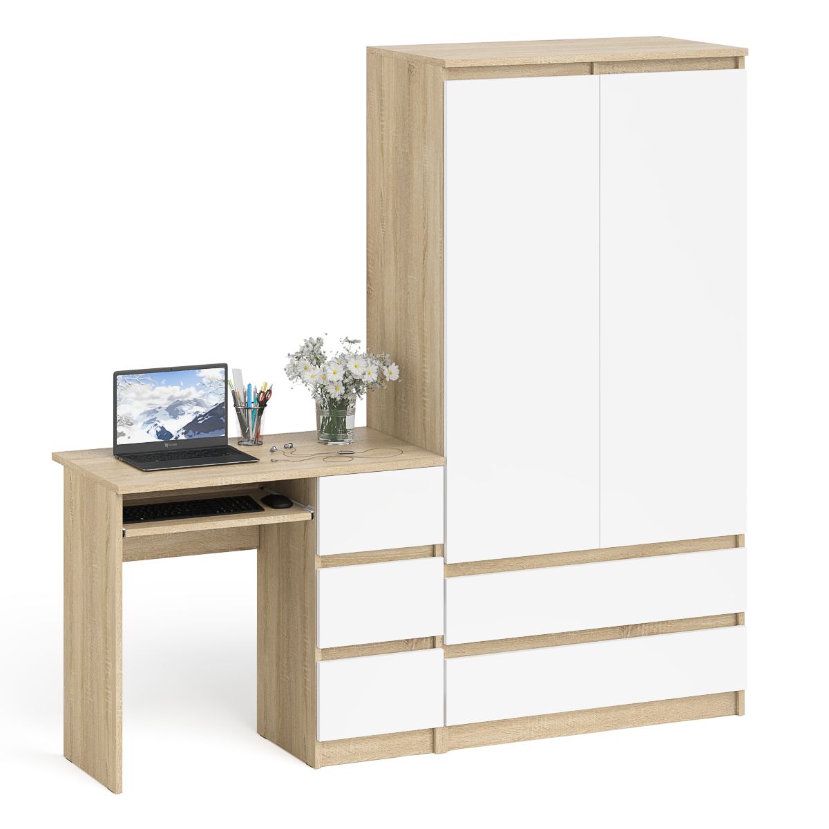 Отзывы о Столплит Компьютерный стол с ящиками правый и шкаф-комод МШ900.1 Мори Дуб Сонома, Белый