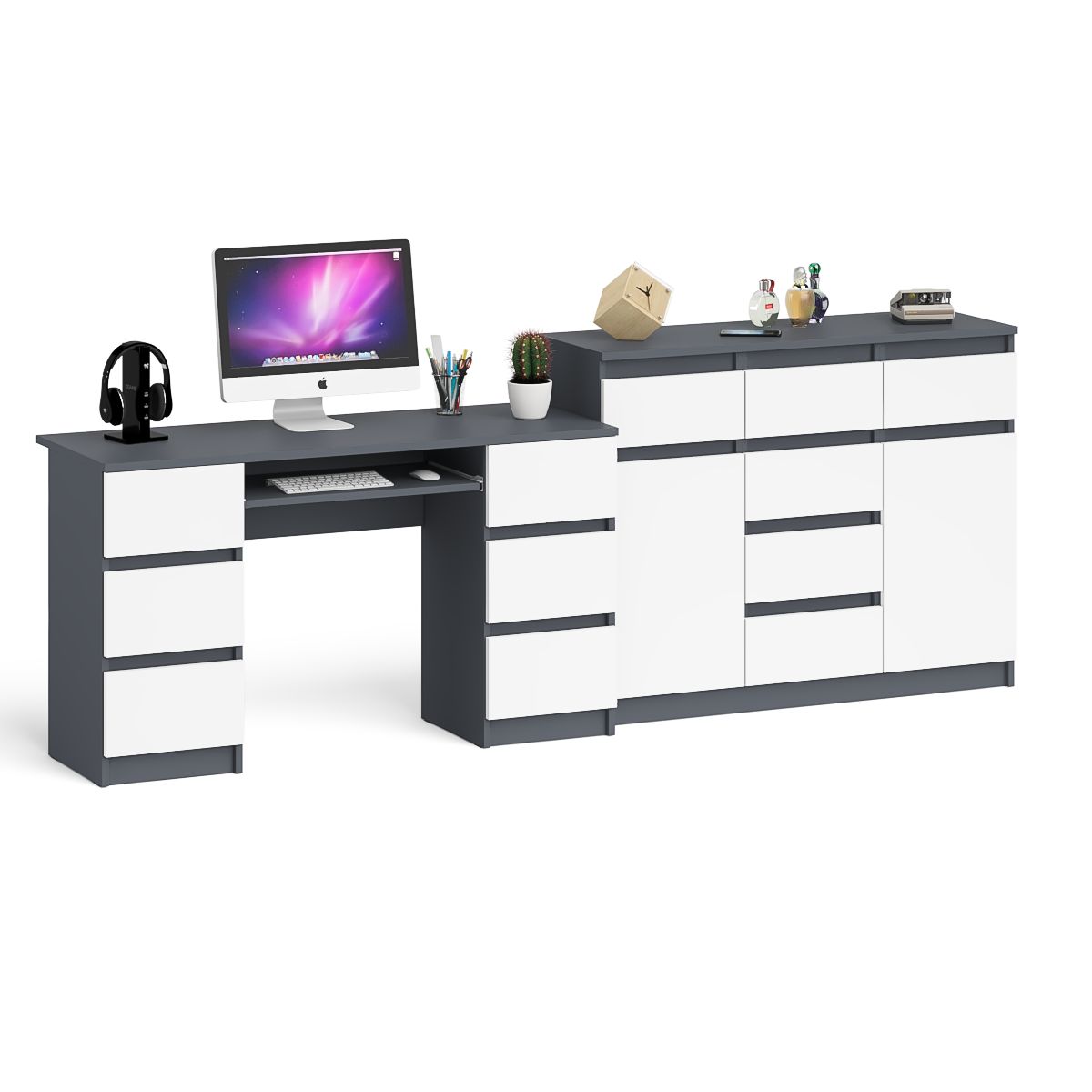 Отзывы о Столплит Двухтумбовый стол компьютерный МС-2 с ящиками и тумба-комод МК1200.4 Мори Графит/Белый