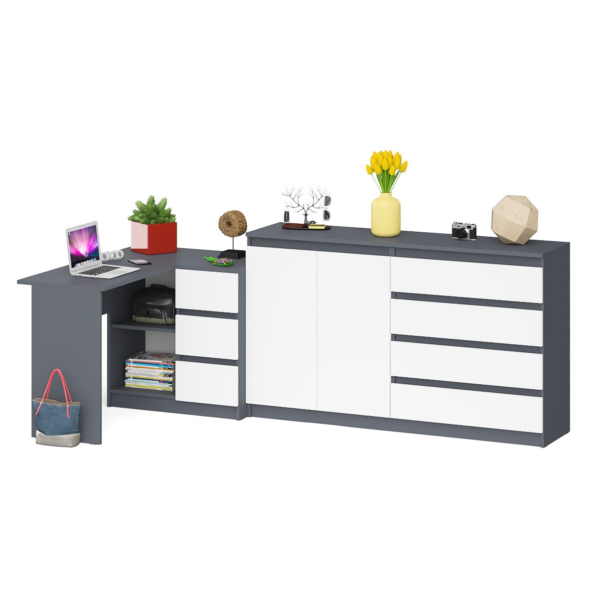 Отзывы о Столплит Стол угловой компьютерный МС-16 правый с комодом-тумбой МК-1600 Мори Графит/Белый