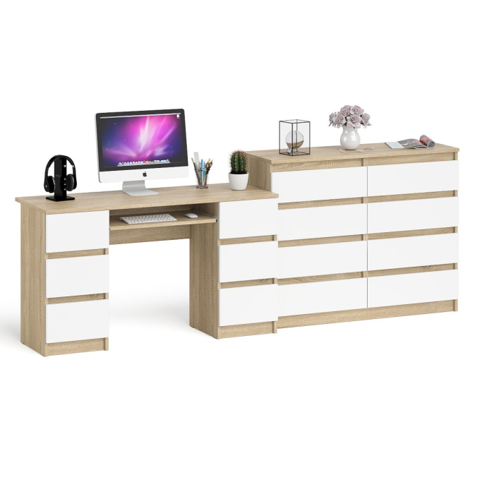 Отзывы о Столплит Стол компьютерный МС-2 ящики слева и справа и комод МК1200 8 ящиков Мори Дуб Сонома, Белый