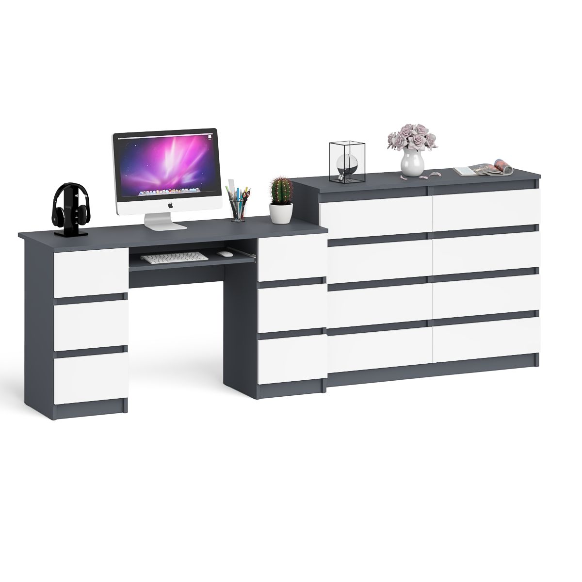 Стол компьютерный МС-2 ящики слева и справа и комод МК1200 8 ящиков Мори - минималистичный дизайн и доступная цена позволяет наслаждаться качественной и современной мебелью без значительных финансовых затрат!