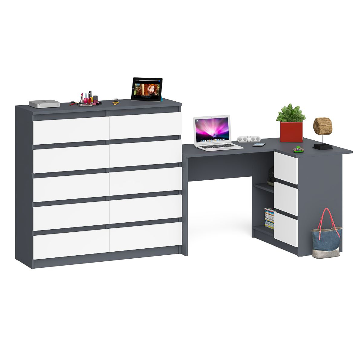 Отзывы о Столплит Стол компьютерный МС-16 с тумбой справа и высокий комод на 10-ть ящиков Мори Графит/Белый
