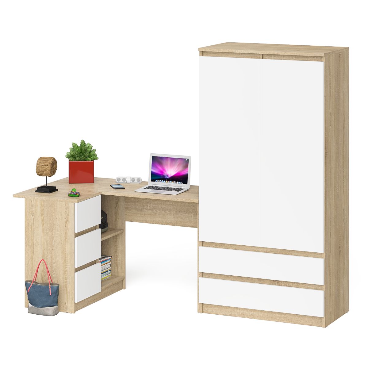 Отзывы о Столплит Угловой однотумбовый стол компьютерный левый Мори и шкаф-комод Мори 900 Дуб Сонома, Белый